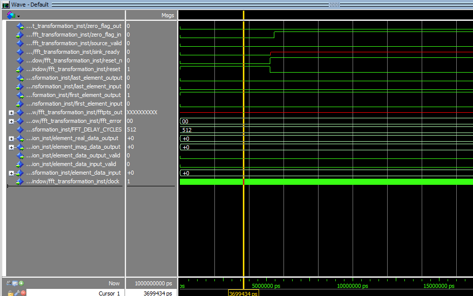 I have generated a 512 point fft and am attempting to run the simulation for the block,