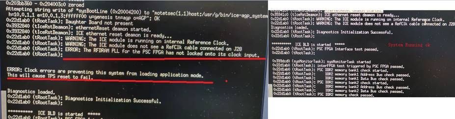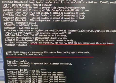 根据系统报错提示和debug guide分析,我们测量了从J28过来的参考时钟(REFCLK_PSC) 80 M 正常。查看FPGA U49 的焊点正常,reflow U49无效,更换U49系统恢复正常