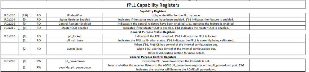 1. Just wonder if the "Enable capability registers" and "Enable control and status registers" under the Optional Reconfiguration Logic tab are checked in the fPLL IP core during instantiation?