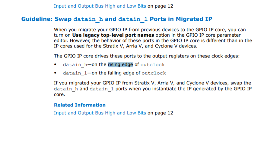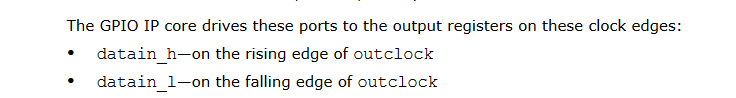 GPIO DDRIO IP output swapped: datainhi/datainlo inverts forwarded clock