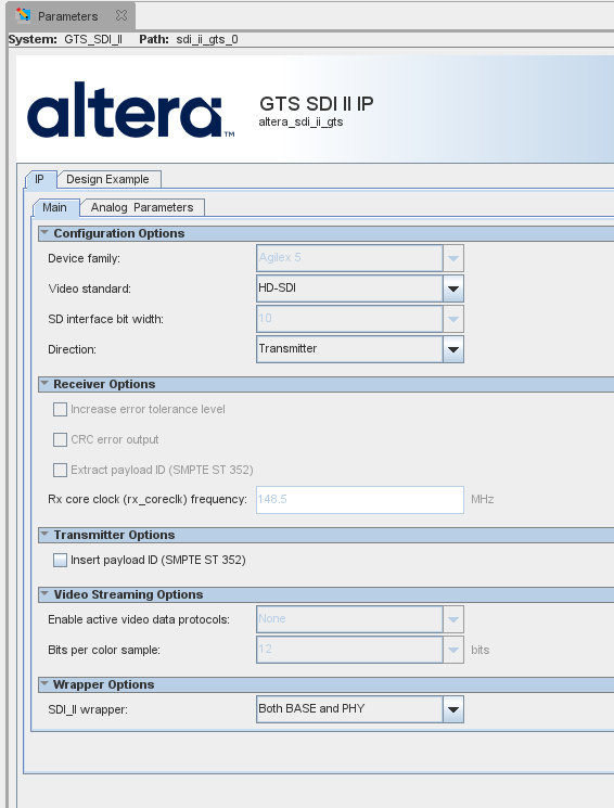 i'm trying to set-up the GTS SDI II IP Core (version 2.3.0)