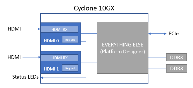 I now have a new situation. I was, after an extended battle, able to get the HDMI RX design working. This design consisted purely of two HDMI RX channels running in a Cyclone 10GX. The design worked on both the Cyclone 10GX dev board, as well as our own prototype hardware.