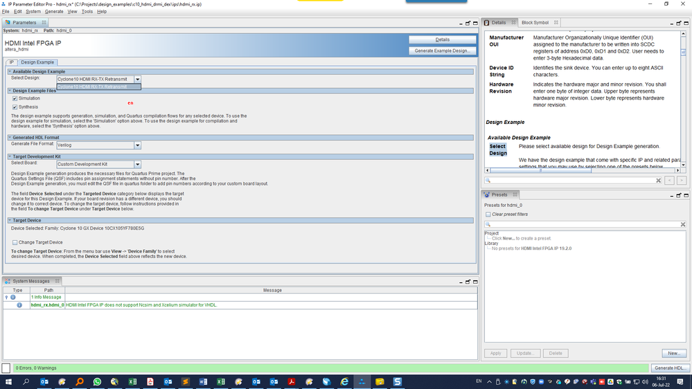 You are referring to the Design Example for Arria 10, but I'm working with the Cyclone-10.