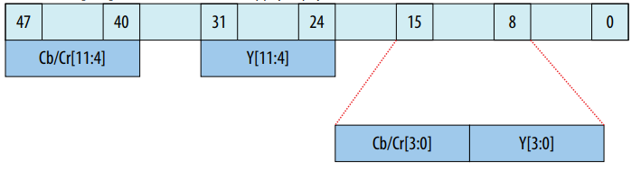 Cb/Cr[47:38], Y[31:22], Cb/Cr[15:11] , Y[10:6].