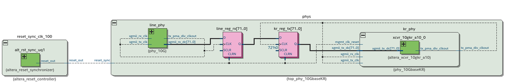 Thanks Dlim! I am using version 18.1 Pro on Linux. It seems that Intel/Altera IP is not fully battle tested. I also see Big timing violations when using the clocking scheme recommended in the PHY user guide and AN795 - specifically when getting XGMII clock from separate FPLL to clock the registers interfacing with the XGMII tx and rx paths of the 1g/10g phy.