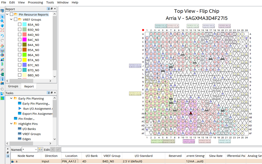 Depending on your design, if you used verilog code then you can set the input pin in your RTL ( as shown in Figure 1) , re-compile the design ( compile at Analysis and Synthesis stage will do) and assign this PIN_AA12 as input in your Pin Planner (Figure 2). Then directly connect the VREF to this PIN_AA12. Make sure also the I/O standard is set accordingly with your design. What shown in Figure below is just an example for your reference. 😊