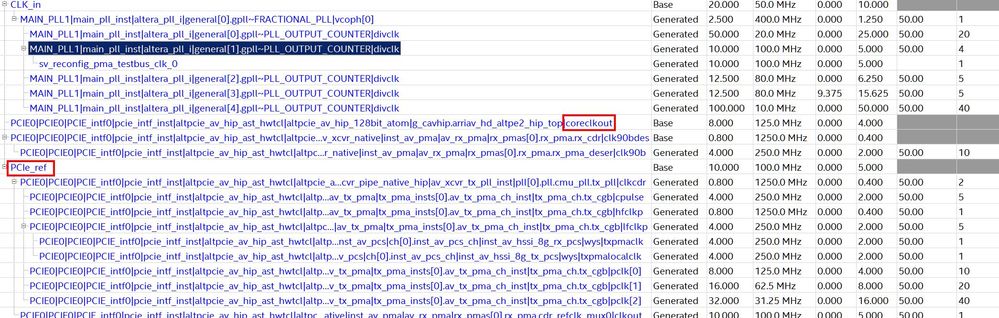 I'm using a Cyclone V GT PCIe Avalon ST core. It might be helpful to use coreclkout_hip to run our application layer, but it is not clear how that clock is generated and how much jitter it has.
