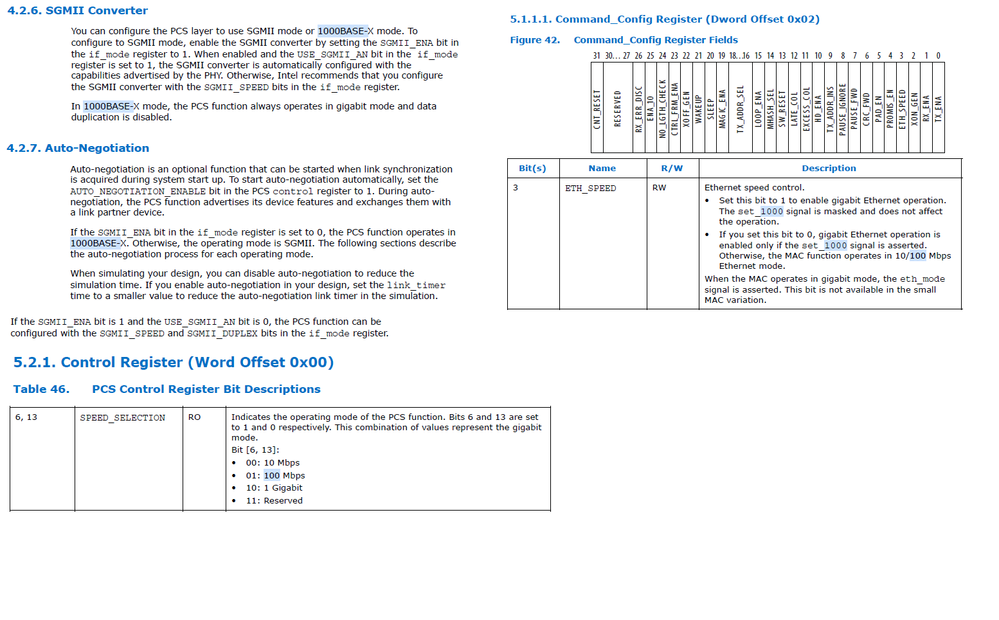 TSE IP works as expected at 1Gbps. However, it is desirable for us to lock the operation at 100 Mbps. Based on what we interpreted from the user guide, we have been trying to configure the IP, however we've had no sucess changing the interface speed from 1Gbps to 100Mbps, no matter what we do.