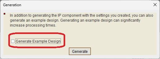 so I thought maybe I just shouldn't generate the example design, so I ran it, and it was generated without any errors.