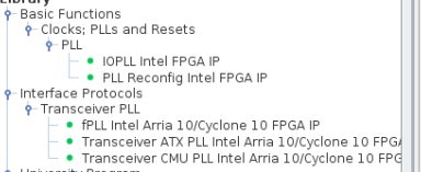 For PLL selection, for example in Quartus 18.1 version, we can use:
