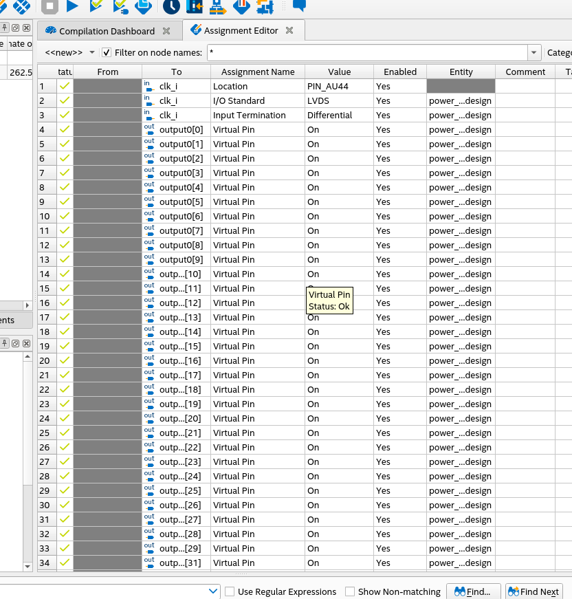 I do not have enough IO on the board to accommodate 3000 outputs, so I just don't constrain the output signals to a pin. Quartus gives an error and will not synthesize the design since I am trying to synthesize more IO than I have on the board.