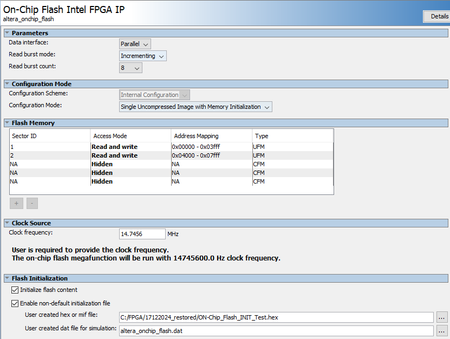 GalM1New Contributor1 year agoimplement On-Chip-Flash with Hex file Hi All, we are using a MAX10 chip with implemented Flash our target is to have an internal flesh with default values that we will read we have astablished the connection between a component and t...Show More