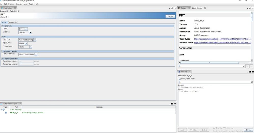 1, create a Quartus project and install a Intel FFT IP core
