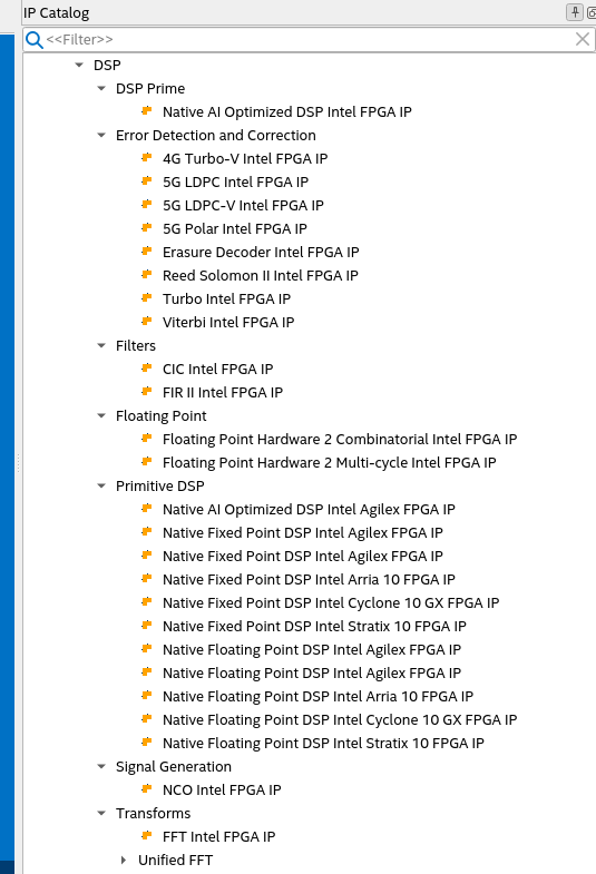 I'm looking for Intel IP for FGPAs , especially for the new CYC1000 board, for things like I2S Codec interfaces, multiply accumulators and such related to digital signal processing to create a multi channel audio mixer.