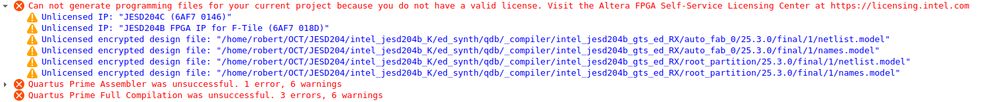 However, after making the changes and assigning the pins, I wanted to generate the final output file, but I encountered the following license error: