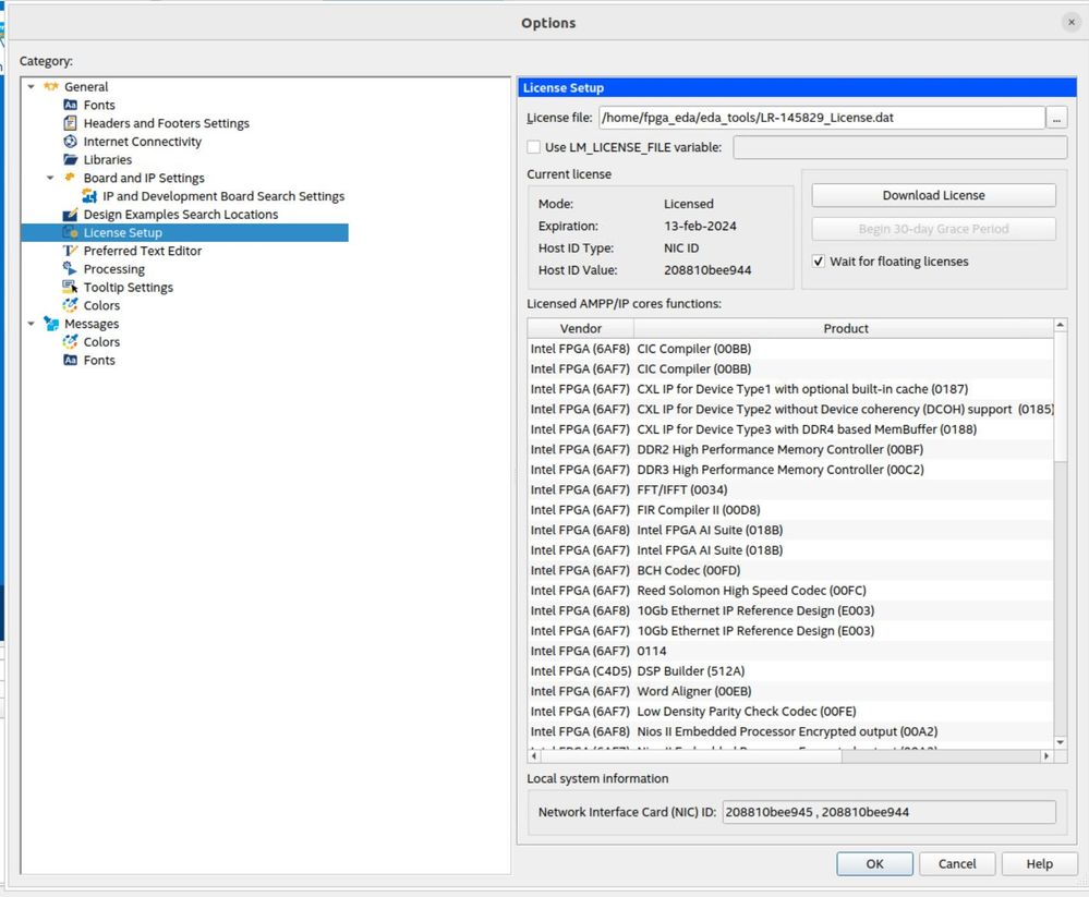 During the implementation of the Golden Hardware Reference Design (GHRD) for DK-DEV-AGF014E, I encountered errors indicating missing licenses. These errors are specifically associated with Triple-Speed Ethernet, Nios V/m Microcontroller, names.model, and netlist.model. While attempting to obtain an evaluation license, I observed that only one is available for the Nios V/m Microcontroller. Could you please guide me on where to find the licenses for the other components mentioned?