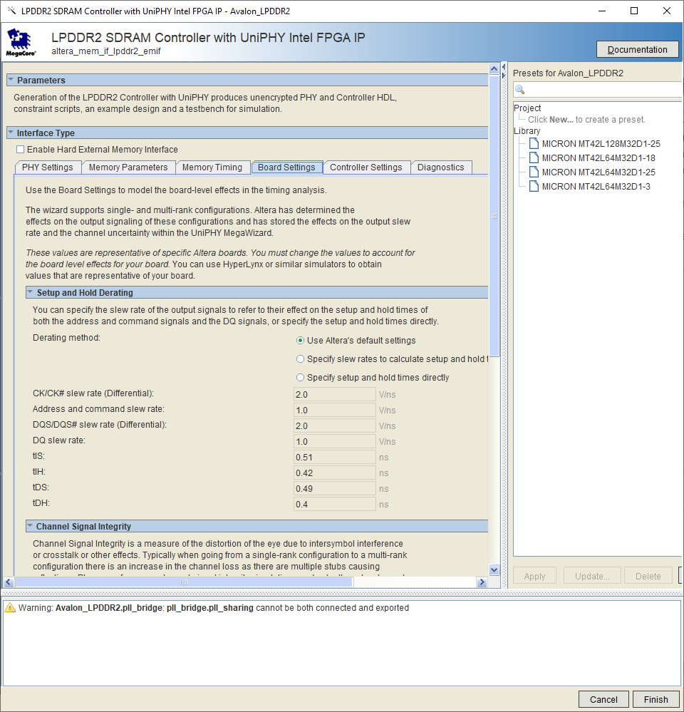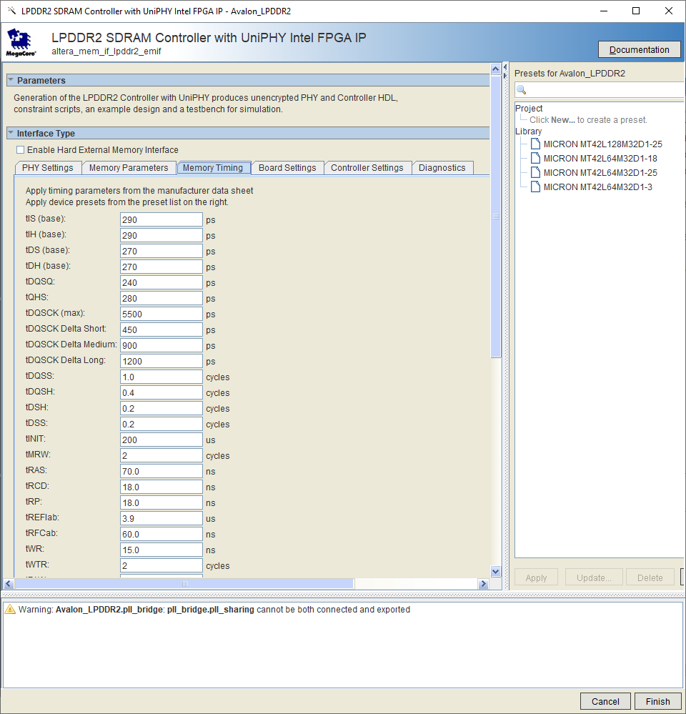 What I would like to do is to test the LPDDR2 interface using External Memory Interface Toolkit. However, while I can initialise connections, when I "Link Project to Device" I get an error consistent with all versions of Quartus, except 22.1 where I now get a NIOS error if I run the MegaWizard Plug-in Manager.