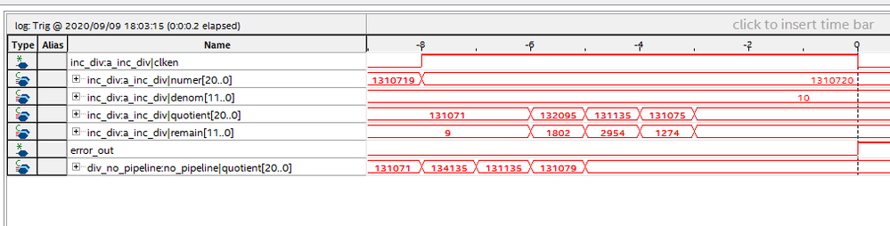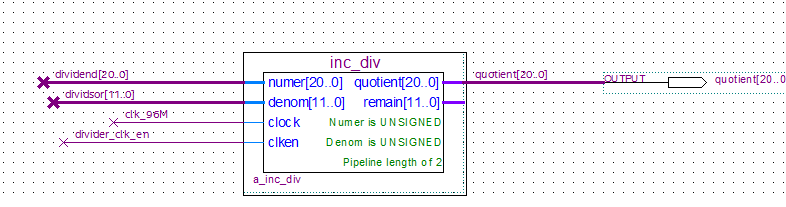 but i did not found information about the latency of LPM DIVIDE , so i do not know how many clks should i wait to get the right outputs