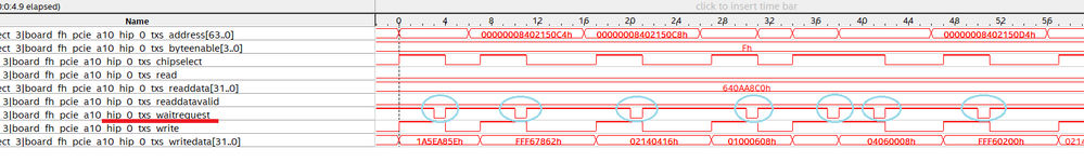 1) For good eth-receiving direction, in which "mSGDMA (mm_Write) moves data from TSE MAC into PCIe HIP TXS ", "PCIe txs_waitrequest" signal can be deasserted to activate the mSGDMA (mm_Write) into Host memory very quickly, and the interval is ~10 clock cycles or so. (see "mSGDMA_writedata.png" )