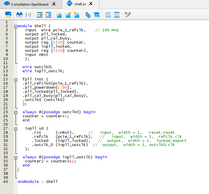 The only changes we made are pin assignments for the general IO to match our custom board, and using Quartus Pro 20.4.0.