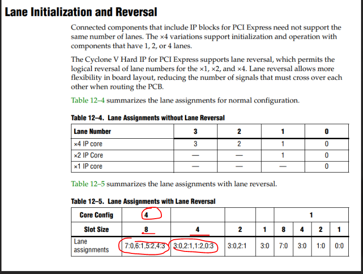 i use the civgx30 on my board to utilize the pciex4 hardip. but unfortunately,i connect (slot lane0) to (fpga lane3),and (slot lane1) to (fpga lane2),and (slot lane2) to (fpga lane1), and (slot lane3) to (fpga lane0). so ,my board cant work. software i use the quartus 11.1. do anyone have some idea? thanks!