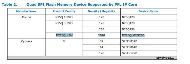 Sorry to tell you that Intel do not support MT25QL128. Please refer image below: