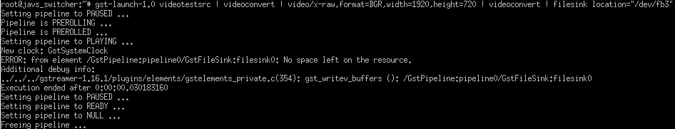 "gst-launch-1.0 videotestsrc ! videoconvert ! video/x-raw,format=BGR,width=1920,height=720 ! videoconvert ! filesink location="/dev/fb3"