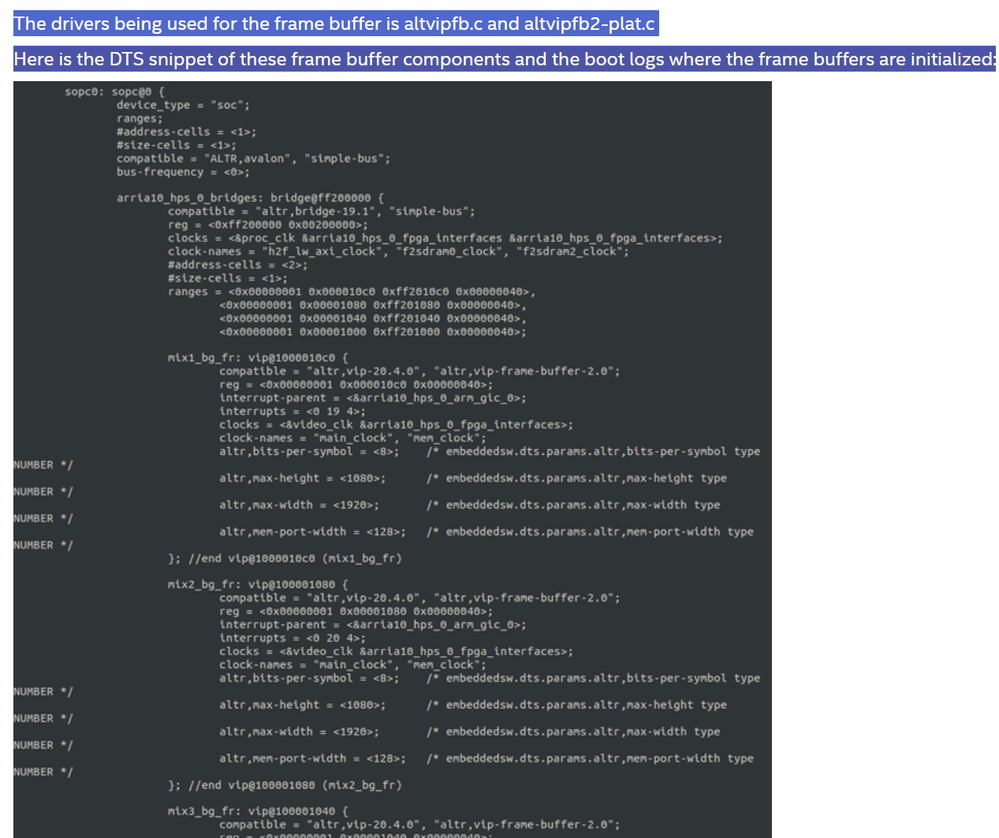 The drivers being used for the frame buffer is altvipfb.c and altvipfb2-plat.c