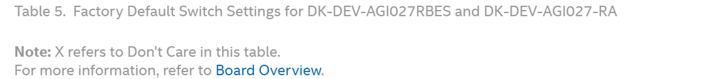 If we program it with the recommended SW4 switch setting (4.1 ON), it does not work and we loose access to the FPGA with a JTAG chain broken error (same as this https://community.intel.com/t5/Programmable-Devices/JTAG-error-after-programming-device/td-p/1594877)