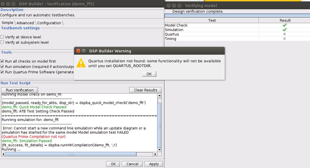 6. Then the verify design option from DSP Builder menu, brings the error again.
