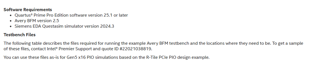 Could you please reach out to us through Intel Premier Support and quote ID #22021038819 to request the Avery BFM testbench files?