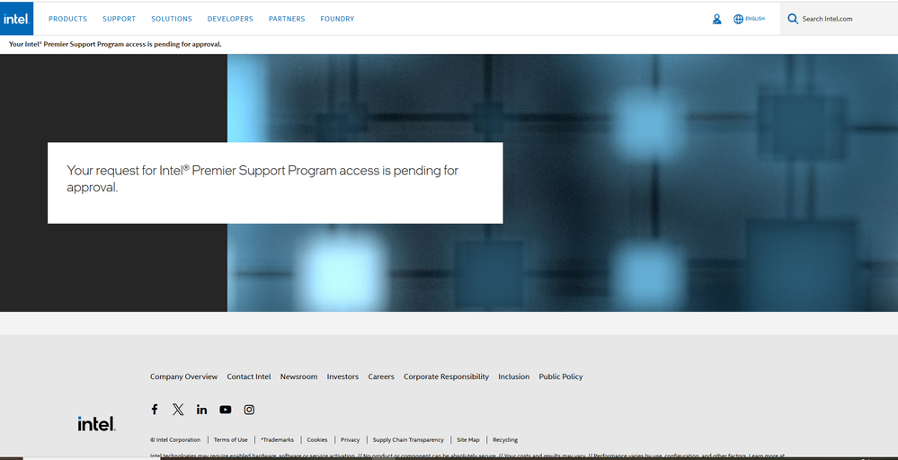 Only accounts with a dedicated account owner are eligible for Intel Premier Support at this time. Please visit the Sign-In Support page for assistance with logging issues into Intel Premier Support. Please refer to the following link: https://www.intel.com/content/www/us/en/support/articles/000092496/programs.html