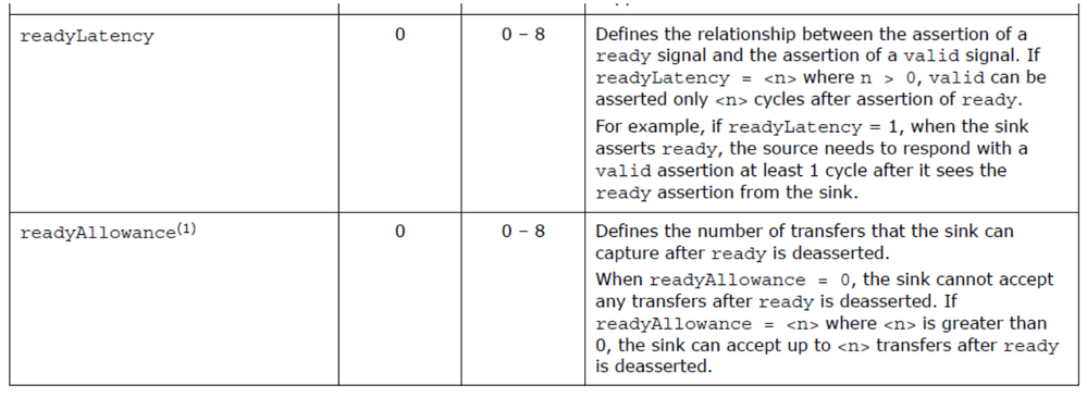 > Refer to the Avalon® Interface Specifications for a detailed definition of readyLatency.