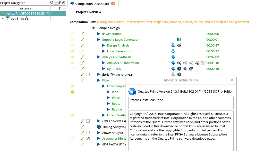 14 days agoUsing Q24.3.1 Pro to generate a FGT 400Gx8 example design and do migration to your target Dev Kit. The project can pass compilation.
