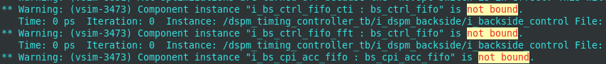 I'm working on simulation with IP cores and having issue with unbound components. Specifically, the Questa compiler complains about the dcfifo mixed width have declared and instantiated interface aren't matched. It doesn't error out the simulation but it creates undefined status signal, such as fifo empty and full, which are used to constraint other control signal like fifo read and write.