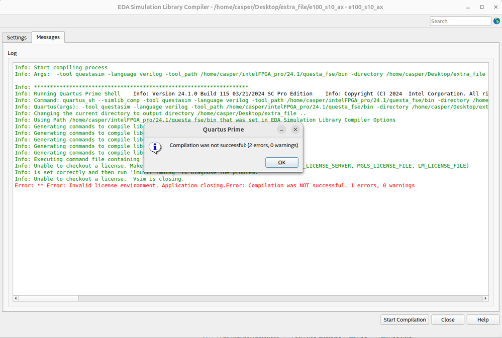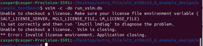 - I have a Platform Designer file where I have designed my signal processing design. This design will produce a lot of data, and I want to stream it to 100GBE. I read the document about the Low-Latency 100Gbe Ethernet IP Core User Guide and the Low-Latency 100Gbe Ethernet Intel Stratix 10 FPGA IP Design Example User Guide. In User Guide 1.5, there is a simulation of the design example testbench, which is not working as expected. It is asking me for a license, which I already have; I even gave it the license path in the command line terminal.