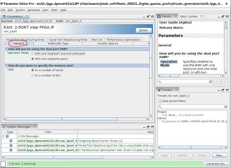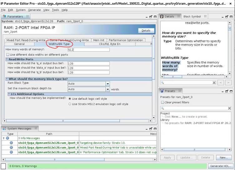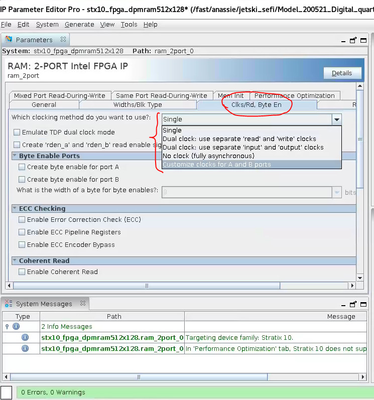 Stratix 10 Dual-Port RAM (with 2 clocks) generation problem