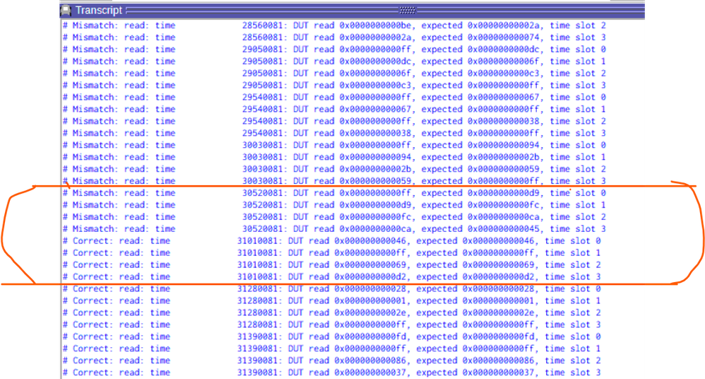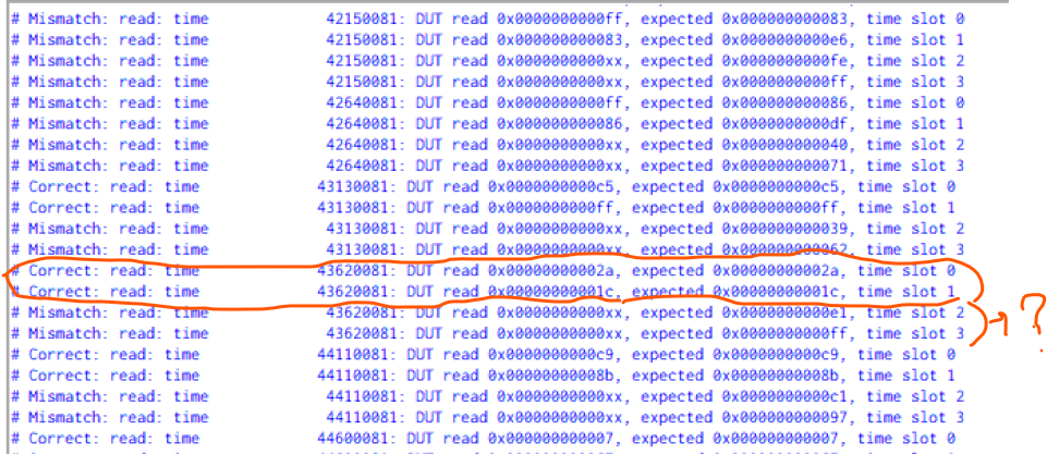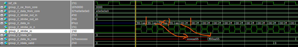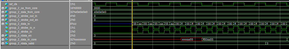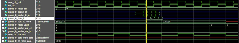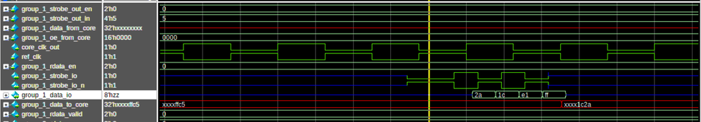 I evaluated the example simulation design using my PHY Lite IP configuration settings. Even within the example design, I observed frequent occurrences of incorrect read data, as illustrated below.