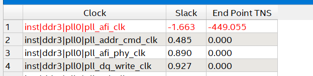 i am getting negative slack on pll_afi_clock of ddr3 memory
