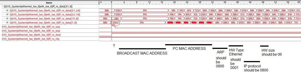 When looking signals coming out TSE with SignalTap (TSE sould receive an ARP packet in 100MBits/s Ethernet mode), I can't explain the results: