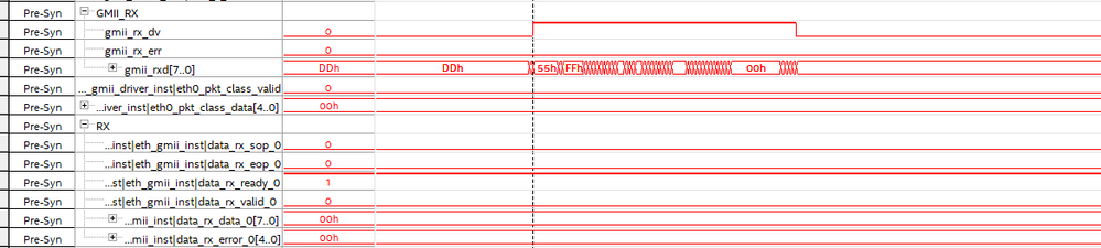 In the rare cases where the data received via GMII arrives on the Avalon-ST RX bus, it looks like this: