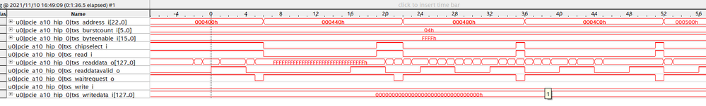 In Arria 10 , I use PCIE + mSGDMA ,when PCIE_HIP setting the interface type is Avalon-MM with DMA,the txs_waitrequest_o There will be the following performance.Interface type is Avalon-MM with DMAAvalon-MM with DMA txs signal_tapInterface type is Avalon-MMAvalon-MM txs signal_tap