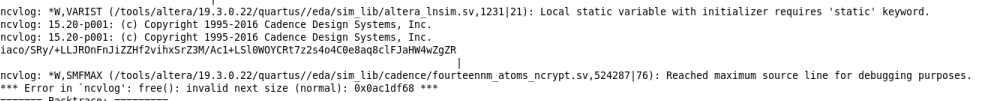 - Which ncsim version that you used ? Byright Quartus v19.3 should pair with ncsim version 15.20.074
