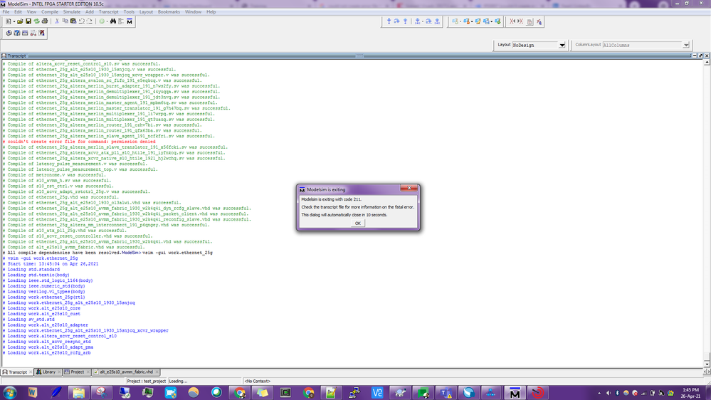 In this process, I face an error and mdoelsim exits with code 211 along with this info in vstf file: