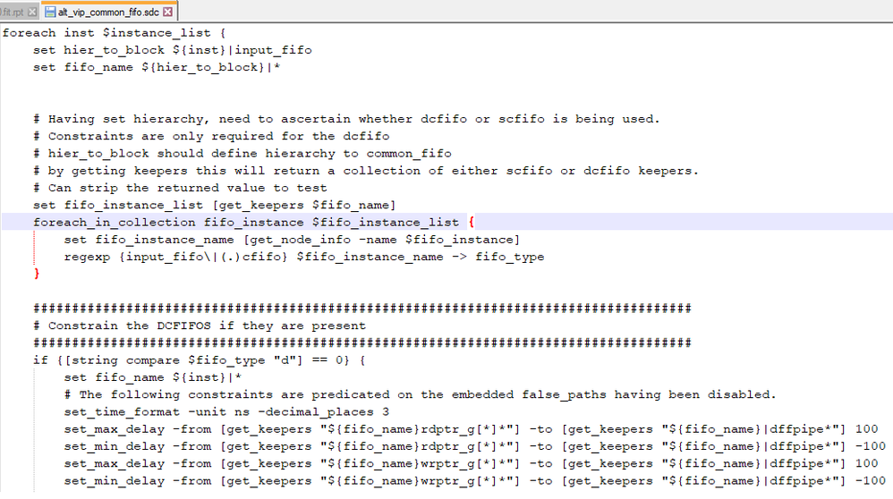 If i delete all ".sdc" files with the fifo_type-check befor the fitter starts, fitting can finish. But im not sure if the design will work correct .