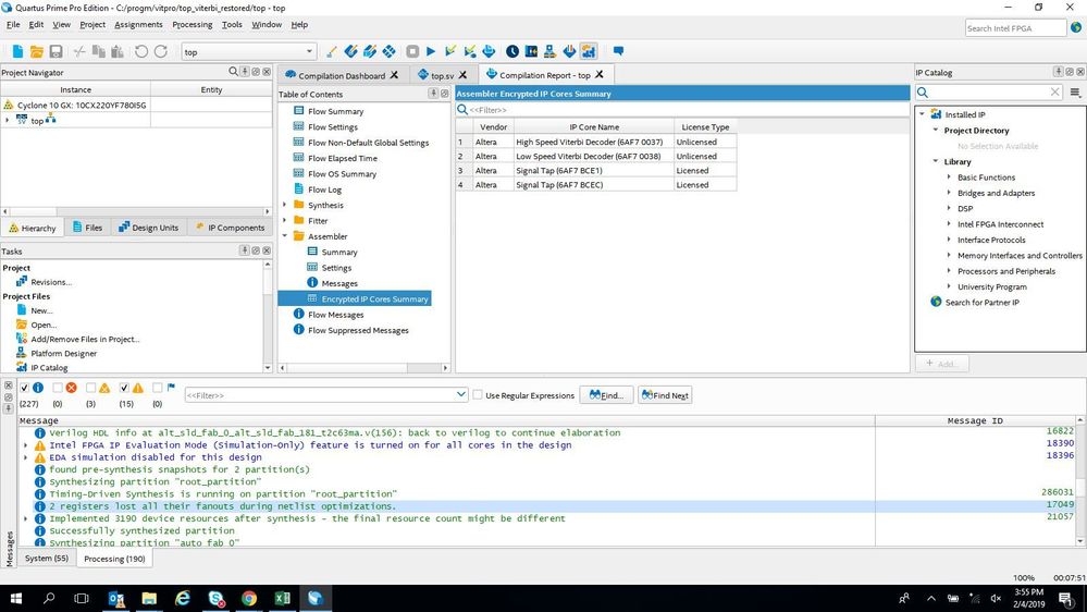 Warning(115004): Unlicensed encrypted design file: "D:/work/shaw/achilles_sdr_fec/build/qdb/_compiler/achilles_sdr/root_partition/17.1.2/final/1/netlist.model"