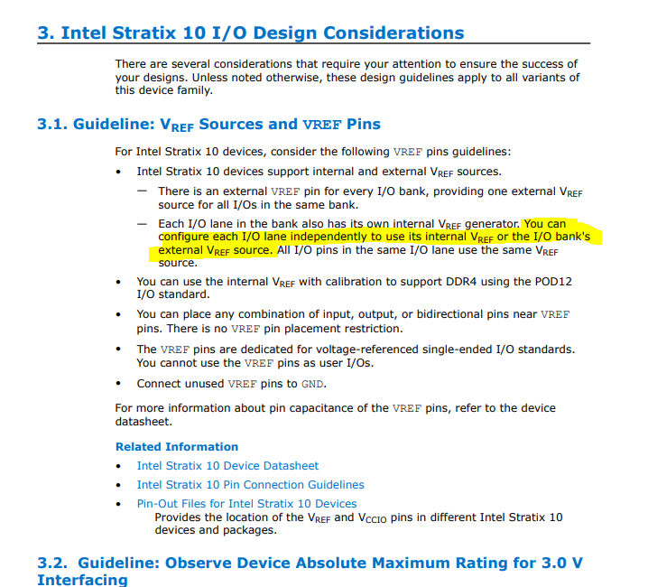 1) Is there option to define which VREF the FPGA use ? (interal FPGA vref or external IO pin )