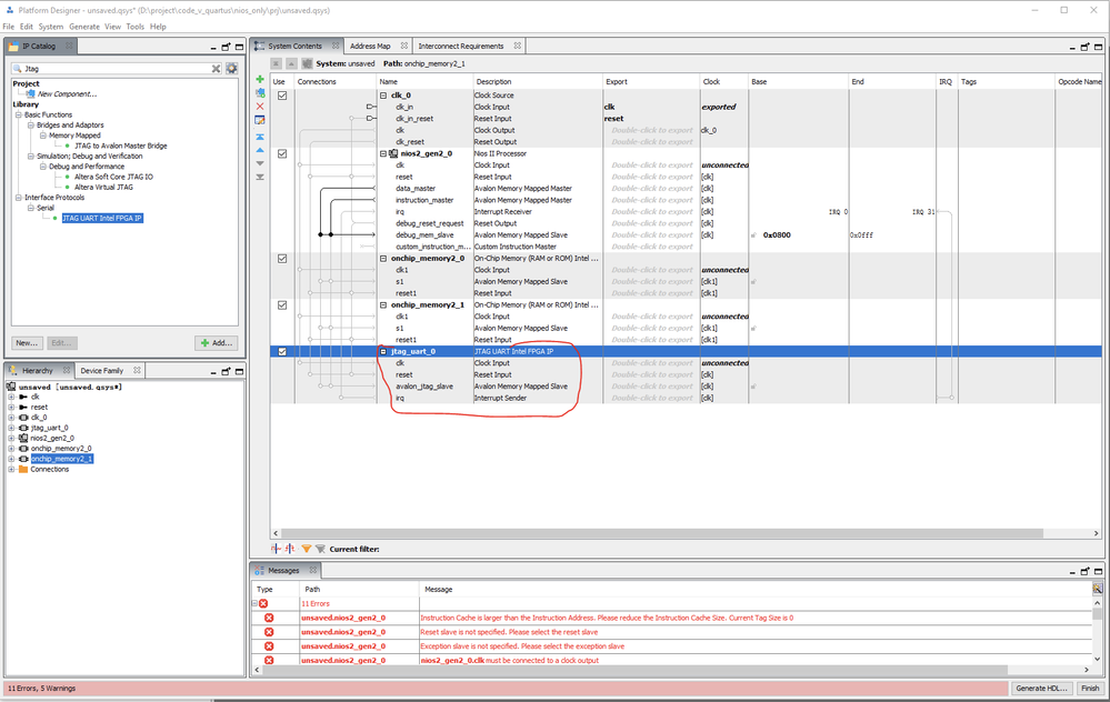 1) how to enable/configure UART burning interface in Quartus Platform Designer?