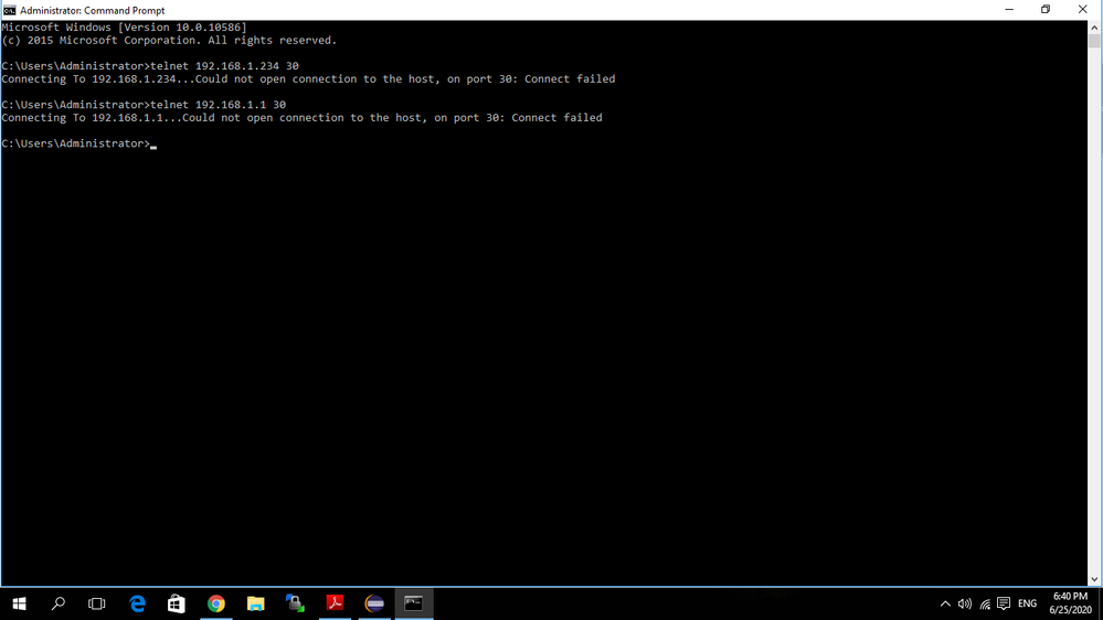 But I went on to open TELNET session for 192.168.1.234 with port no.30 . I am unable to do so.