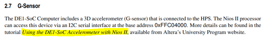 I'm reading tutorials and one of them says that there's another tutorial named :" Using the DE1- SoC Accelerometer with nios II " that I can't find anywhere.